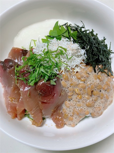 2021-12-13 ばくだん丼&薔薇 お料理&お菓子 ガーデニング 7月に書いたもの 下書きのままになってた💦 鰹、納豆、山芋、しらす、のり、青じそ かつお、納豆、たまご、のり、青じそ ベランダで栽培中の シャンテロゼ、みさと 香りが大好き💕