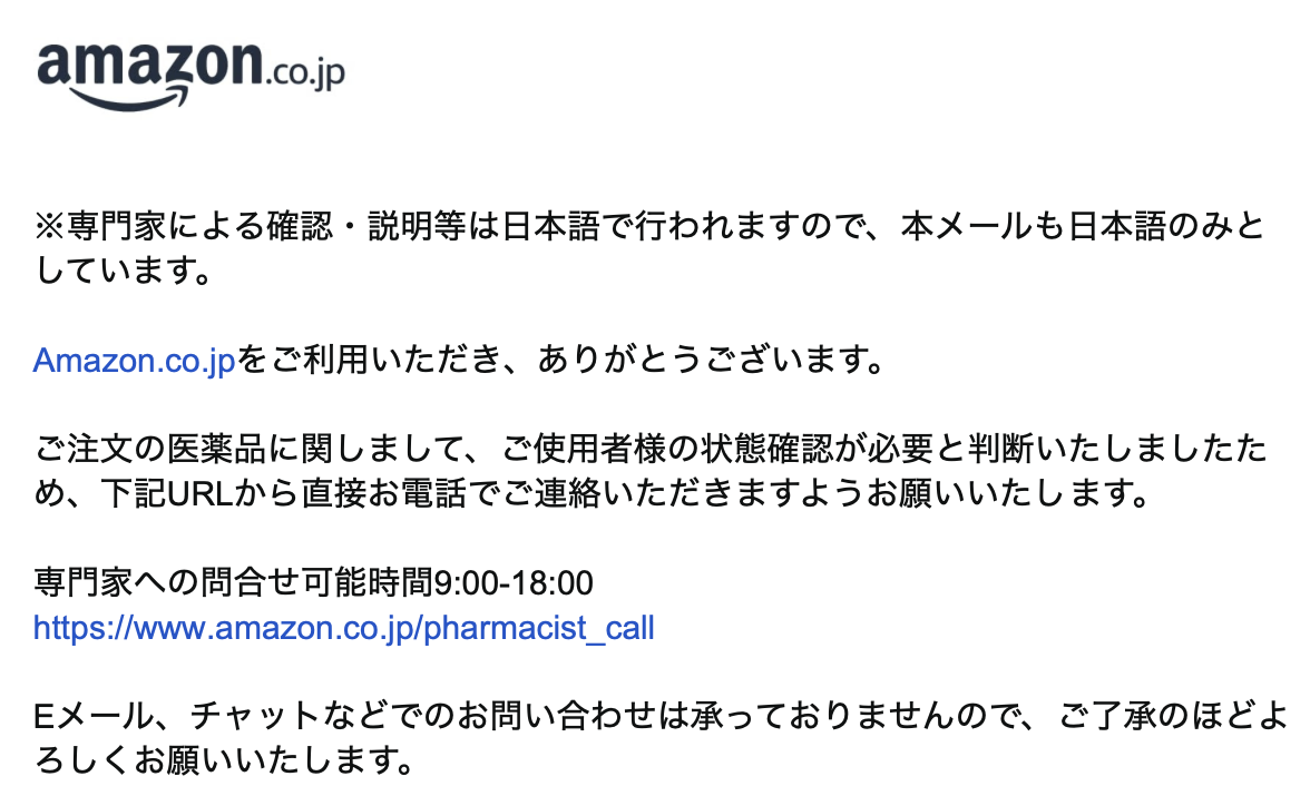 Amazonから「重要」医薬品に関する適正使用確認のお知らせが届いた