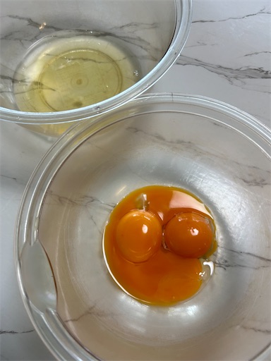 卵黄に三温糖を大さじ1だけ混ぜる